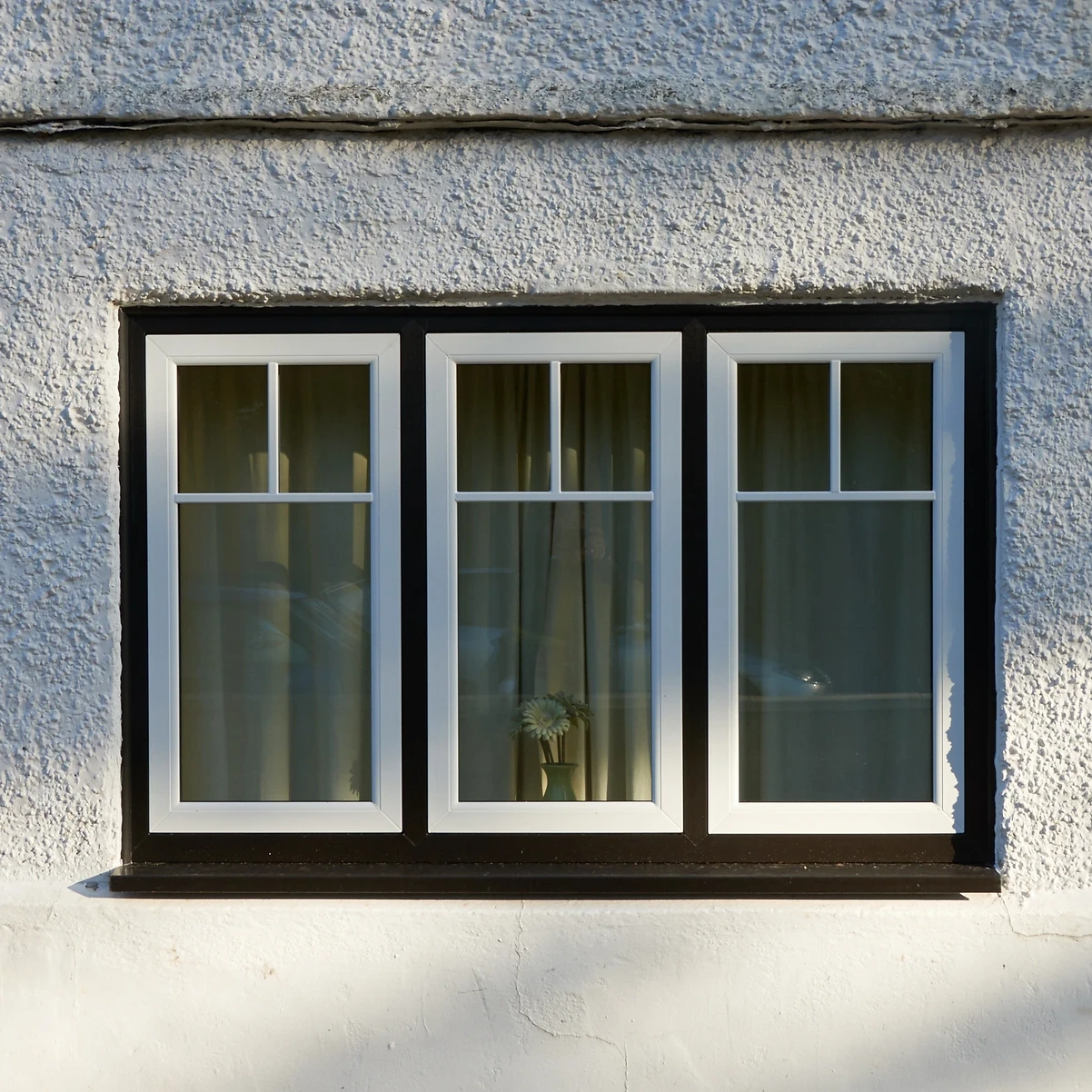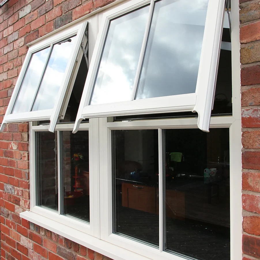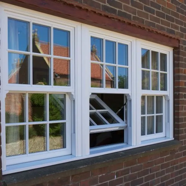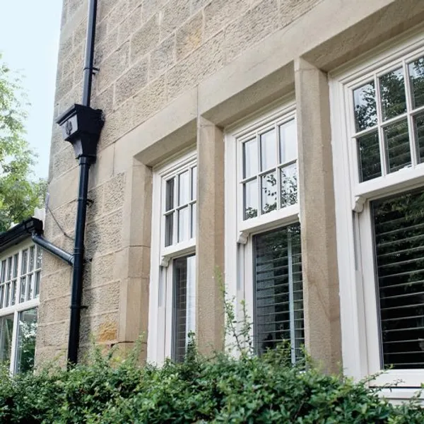These sash windows are available in cream, white or woodgrain.