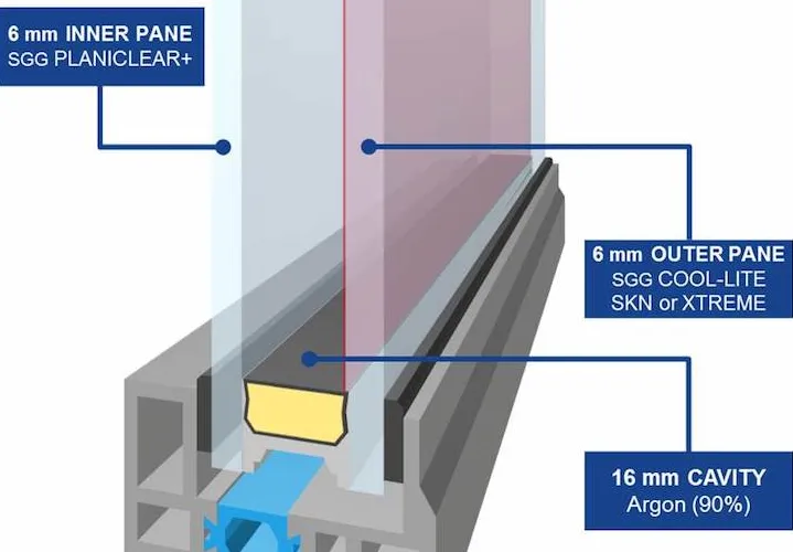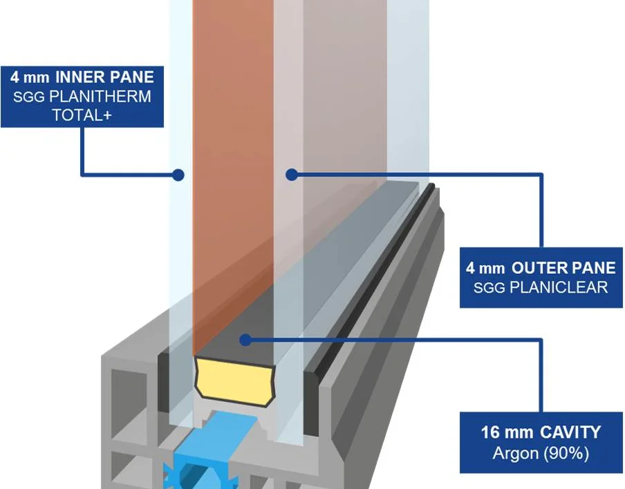 - Optimum performance – 28mm double glazing with our triple glazed systems using 12mm air gaps