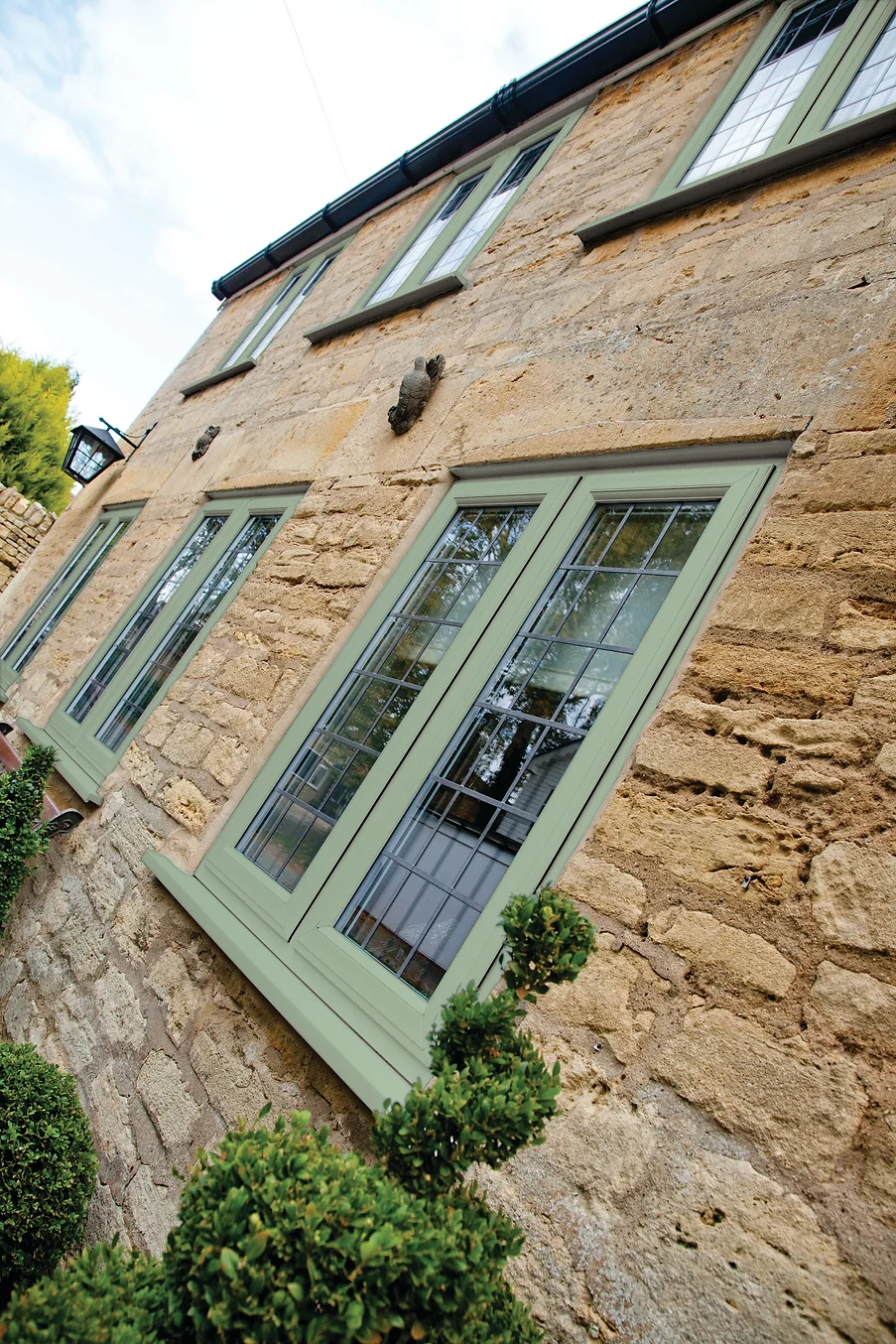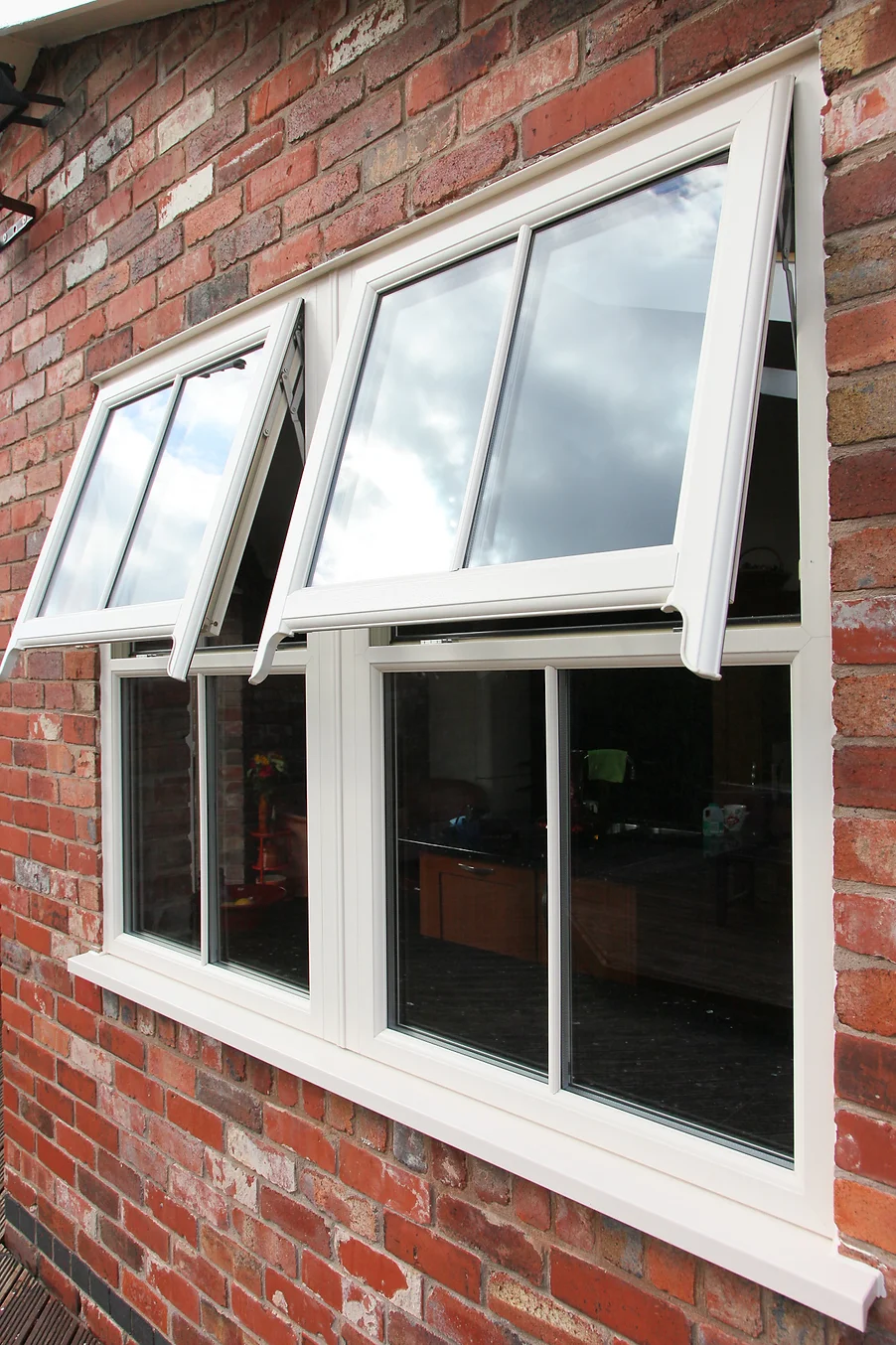 These sash windows are available in cream, white or woodgrain.